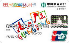 全国首张国民旅游休闲卡于2009年4月28日正式发行,中国工商银行广东省分行、中国农业银行广东省分行、中国建设银行广东省分行、光大银行广州市分行、兴业银行广州市分行五家银行将以信用卡和借记卡的方式率先推出国民旅游休闲卡。其中中国工商银行国民旅游休闲卡信用卡内含芯片,拥有感应式扣费功能,将更广泛地应用于不同的旅游景区景点入口收费站,为到景区游览的市民带来便利。中国银行广东省分行、深圳发展银行等多家银行也有意向将在近期内加入授权发卡单位行列,陆续推出国民旅游休闲卡。