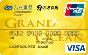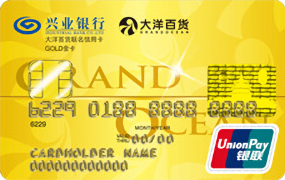 兴业银行大洋百货联名信用卡真正实现了兴业银行信用卡与大洋百货VIP会员卡的二卡合一,客户可同时享受兴业银行信用卡的超值优惠和大洋百货VIP会员的尊贵礼遇。