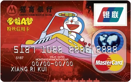 招商银行《哆啦A梦粉丝信用卡》为一套四张卡面,分别为:神奇现身、神奇时光机、神奇任意门和神奇竹蜻蜓。其中“神奇现身”为标准卡,剩余三种为珍藏卡。申请珍藏卡时需要为每卡缴纳人民币10元的费用才能得到。