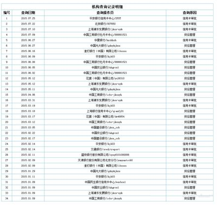 ④这一个部分是查询记录,无论是在银行还是小贷机构申请贷款,查询的申请人的征信报告,就会在这里显示查询次数、查询机构、审批情况等等。