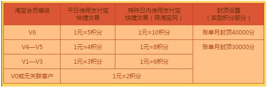 淘宝购物有积分,节日积分翻10倍:淘宝会员生日、会员入淘周年庆、淘宝新会员注册日、会员日等特殊日,使用淘宝V卡在淘宝网的支付宝快捷交易最高可享10倍中信信用卡积分,具体如下: